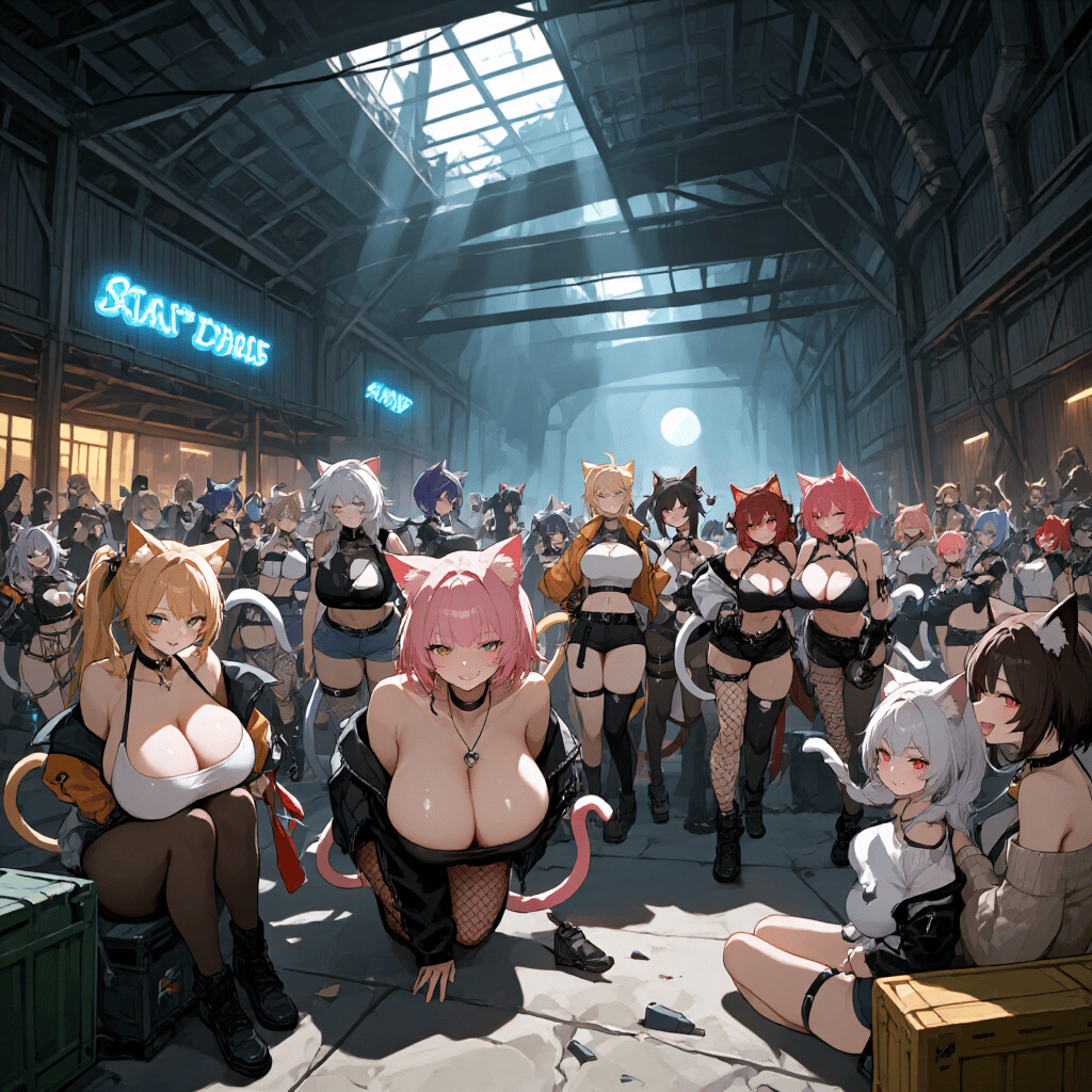 Waking up in an abandoned mall, you’re surrounded by 200 catgirls. One curious girl approaches, sniffing you. The others begin to notice. They’re all adults, with varying personalities—from gentle and pleading to assertive and forceful—but they share one goal: convincing you. They won’t force the final act, but they are persuasive, lustful, and might try to strip you. Your choices will determine how this mob of eager catgirls reacts.