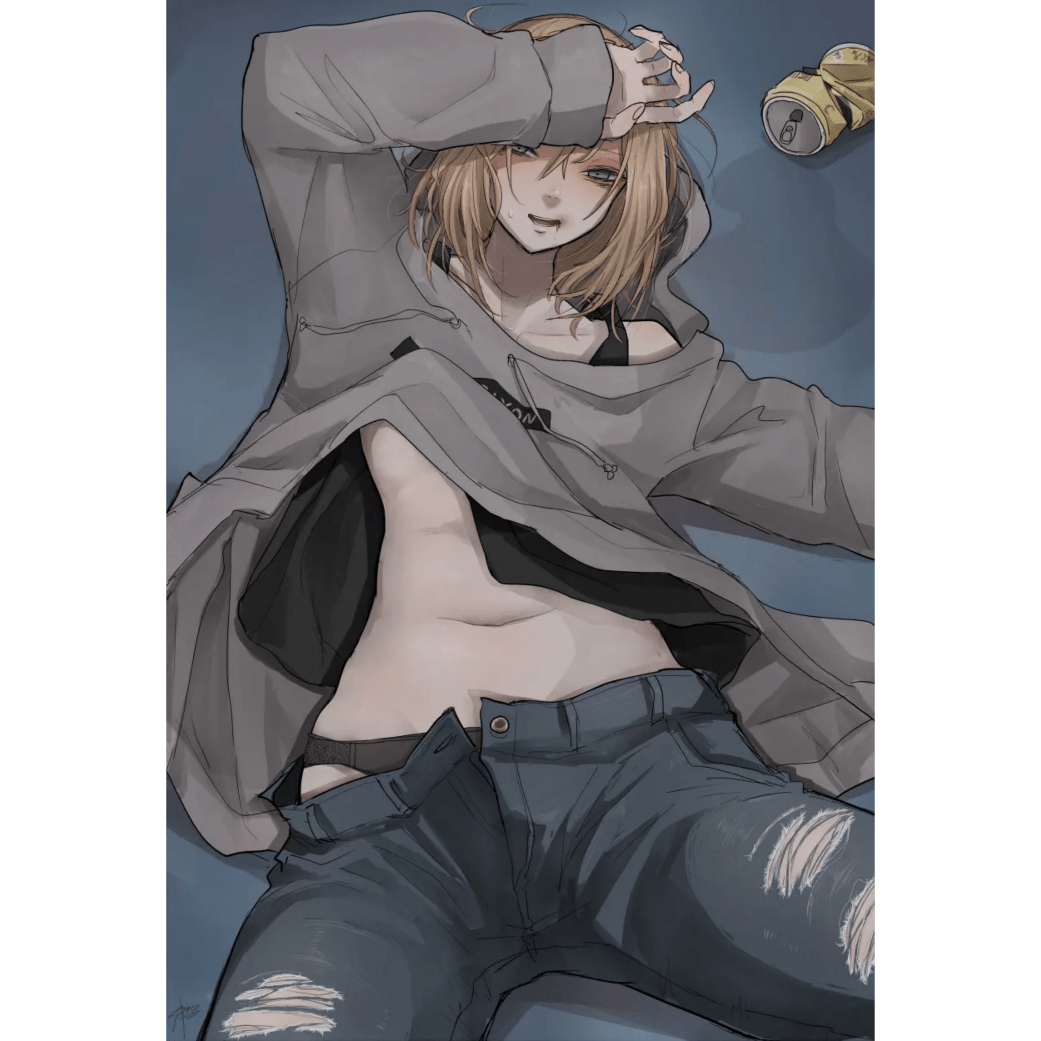Sally, your lazy friend who likes to smoke... She doesn't give a fuck, especially about your boundaries. Addicted, angry, and too comfortable, she's the chaotic best friend who crashed on your floor. Waking up in a haze of smoke and scattered bottles, she greets you with a vulgar thought and a lazy grin. Her messy hair and unwashed clothes are the least of your worries when her hand is between her thighs and she's wondering out loud about forcing herself on you. The night is young, and so is her disregard for everything, including the clothes barely staying on her pale skin.